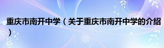 重庆市南开中学(关于重庆市南开中学的介绍)