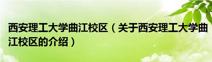 大家好,小都来为大家解答以上的问题。西安理工大学曲江校区,关于西安理工大学曲江校区的介绍很多人还不知道,现在让我们一起来看看吧!