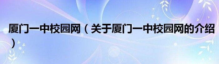 大家好,小都来为大家解答以上的问题。厦门一中校园网,关于厦门一中校园网的介绍很多人还不知道,现在让我们一起来看看吧!