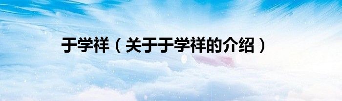 大家好,小都来为大家解答以上的问题。于学祥,关于于学祥的介绍很多人还不知道,现在让我们一起来看看吧!