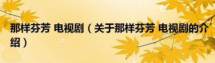 大家好,小都来为大家解答以上的问题。那样芬芳 电视剧,关于那样芬芳 电视剧的介绍很多人还不知道,现在让我们一起来看看吧!