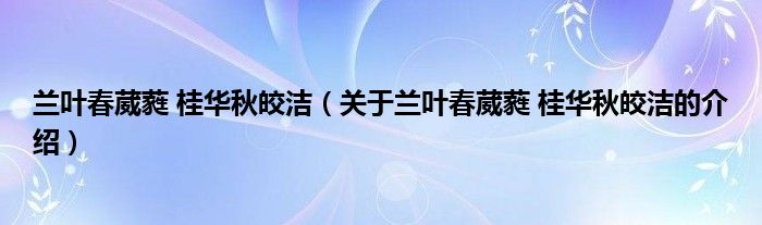 兰叶春葳蕤 桂华秋皎洁(关于兰叶春葳蕤 桂华秋皎洁的介绍)