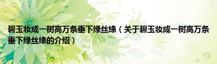 大家好,小都来为大家解答以上的问题。碧玉妆成一树高万条垂下绿丝绦,关于碧玉妆成一树高万条垂下绿丝绦的介绍很多人还不知道,现在让我们一起来看看吧!
