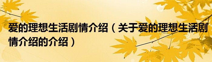 大家好,小都来为大家解答以上的问题。爱的理想生活剧情介绍,关于爱的理想生活剧情介绍的介绍很多人还不知道,现在让我们一起来看看吧!