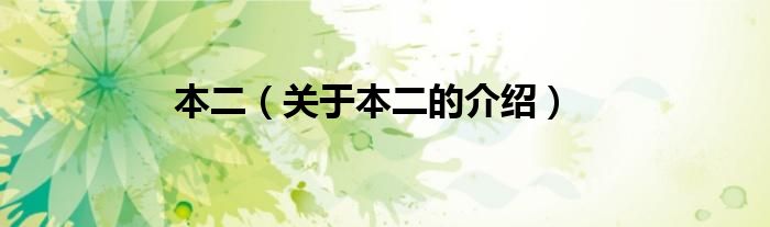大家好,小都来为大家解答以上的问题。本二,关于本二的介绍很多人还不知道,现在让我们一起来看看吧!