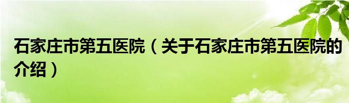 石家庄市第五医院(关于石家庄市第五医院的介绍)
