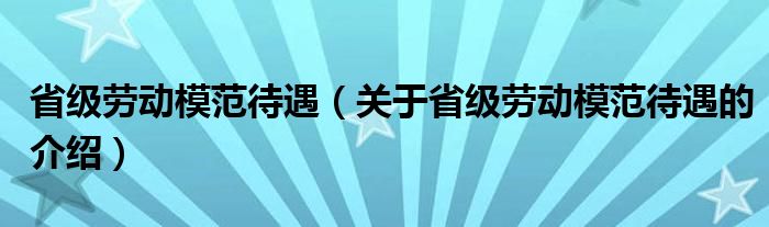 大家好,小都来为大家解答以上的问题。省级劳动模范待遇,关于省级劳动模范待遇的介绍很多人还不知道,现在让我们一起来看看吧!