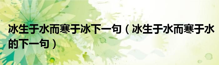 大家好,小晋来为大家解答以下问题,关于冰生于水而寒于冰下一句,冰生于水而寒于水的下一句很多人还不知道,今天让我们一起来看看吧!