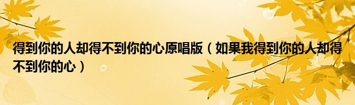 大家好,雨雨来为大家解答以上问题,得到你的人却得不到你的心原唱版,如果我得到你的人却得不到你的心很多人还不知道,现在让我们一起来看看吧!
