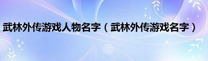 大家好,雨雨来为大家解答以上问题,武林外传游戏人物名字,武林外传游戏名字很多人还不知道,现在让我们一起来看看吧!