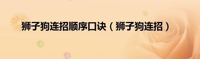 大家好,雨雨来为大家解答以上问题,狮子狗连招顺序口诀,狮子狗连招很多人还不知道,现在让我们一起来看看吧!