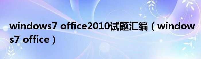 大家好,雨雨来为大家解答以上问题,windows7 office2010试题汇编,windows7 office很多人还不知道,现在让我们一起来看看吧!