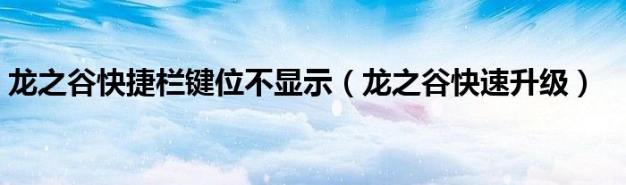 大家好,雨雨来为大家解答以上问题,龙之谷快捷栏键位不显示,龙之谷快速升级很多人还不知道,现在让我们一起来看看吧!
