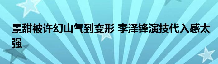 大家好.我是互联百科的羽儿,现在为大家解决以上景甜被许幻山气到变形 李泽锋演技代入感太强的问题.