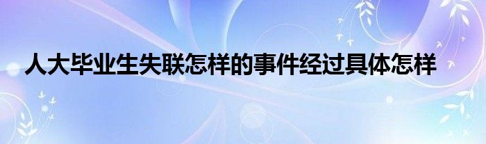 大家好.我是互联百科的羽儿,现在为大家解决以上人大毕业生失联怎样的事件经过具体怎样的问题.