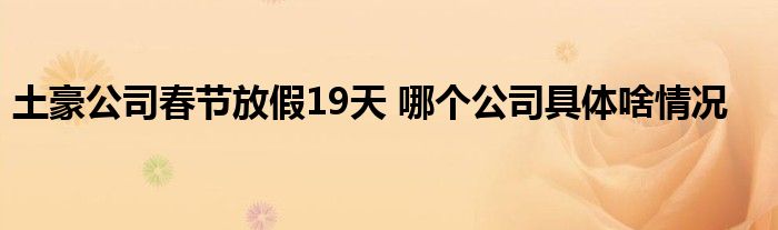 大家好.我是互联百科的羽儿,现在为大家解决以上土豪公司春节放假19天 哪个公司具体啥情况的问题.