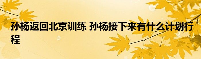 大家好.我是互联百科的羽儿,现在为大家解决以上孙杨返回北京训练 孙杨接下来有什么计划行程的问题.