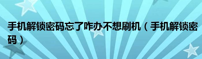 大家好,来宝来为大家解答以下问题,手机解锁密码忘了咋办不想刷机,手机解锁密码很多人还不知道,今天让我们一起来看看吧!