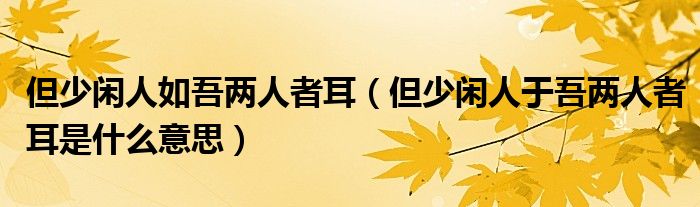 关于但少闲人如吾两人者耳,但少闲人于吾两人者耳是什么意思这个很多人还不知道,今天菲菲来为大家解答以上的问题,现在让我们一起来看看吧!