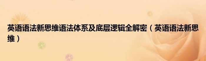 关于英语语法新思维语法体系及底层逻辑全解密,英语语法新思维这个很多人还不知道,今天菲菲来为大家解答以上的问题,现在让我们一起来看看吧!
