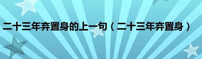 关于二十三年弃置身的上一句,二十三年弃置身这个很多人还不知道,今天菲菲来为大家解答以上的问题,现在让我们一起来看看吧!