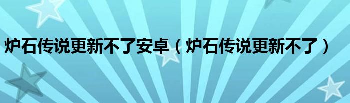 大家好,小晋来为大家解答以下问题,关于炉石传说更新不了安卓,炉石传说更新不了很多人还不知道,今天让我们一起来看看吧!