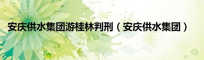 关于安庆供水集团游桂林判刑,安庆供水集团这个很多人还不知道,今天菲菲来为大家解答以上的问题,现在让我们一起来看看吧!