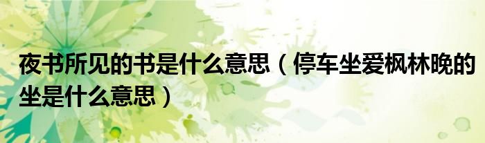 夜书所见的书是什么意思(停车坐爱枫林晚的坐是什么意思)