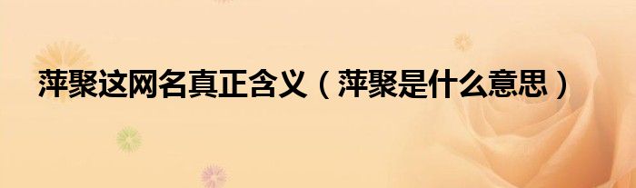大家好,小晋来为大家解答以下问题,关于萍聚这网名真正含义,萍聚是什么意思很多人还不知道,今天让我们一起来看看吧!