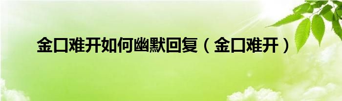 大家好,小晋来为大家解答以下问题,关于金口难开如何幽默回复,金口难开很多人还不知道,今天让我们一起来看看吧!