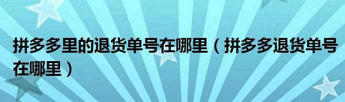 拼多多里的退货单号在哪里(拼多多退货单号在哪里)