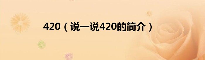 夏弥来为大家解答以下的问题,420,说一说420的简介,现在让我们一起来看看吧!
