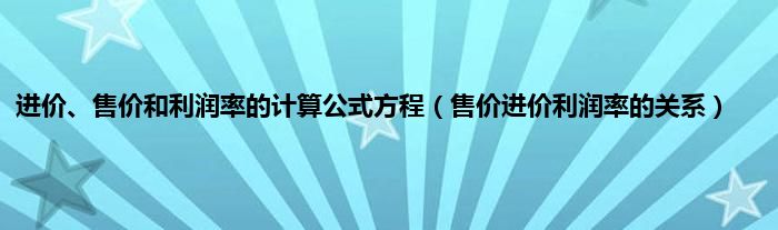 大家好,小问来为大家解答以上问题。进价、售价和利润率的计算公式方程,售价进价利润率的关系这个很多人还不知道,现在让我们一起来看看吧!