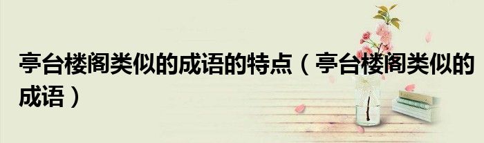 大家好,小晋来为大家解答以下问题,关于亭台楼阁类似的成语的特点,亭台楼阁类似的成语很多人还不知道,今天让我们一起来看看吧!