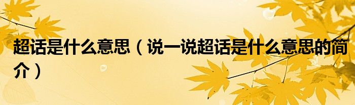 最佳答案夏弥来为大家解答以下的问题,超话是什么意思,说一说超话是什么意思的简介,现在让我们一起来看看吧!1、超话,网络流行词,是超级话题的简称。2、是新浪微博推出的一项功能,拥有共同兴趣的人集合在一起形成的圈子,类似于QQ上的兴趣部落。3、大多以明星偶像为主,只不过在微博的这种环境下,粉丝...