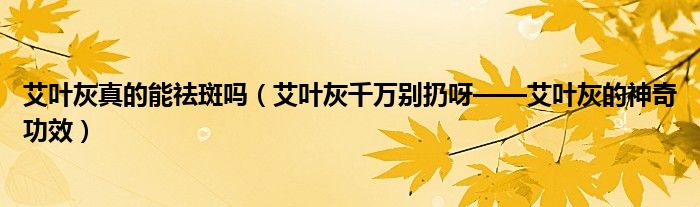 大家好,乐天来为大家解答以下的问题,艾叶灰真的能祛斑吗,艾叶灰千万别扔呀——艾叶灰的神奇功效很多人还不知道,现在让我们一起来看看吧!