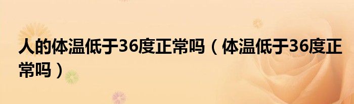 大家好,乐天来为大家解答以下的问题,人的体温低于36度正常吗,体温低于36度正常吗很多人还不知道,现在让我们一起来看看吧!