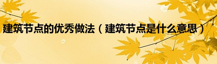 关于建筑节点的优秀做法,建筑节点是什么意思这个很多人还不知道,今天菲菲来为大家解答以上的问题,现在让我们一起来看看吧!