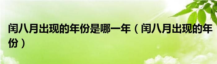 关于闰八月出现的年份是哪一年,闰八月出现的年份这个很多人还不知道,今天菲菲来为大家解答以上的问题,现在让我们一起来看看吧!