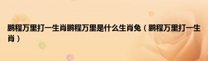 关于鹏程万里打一生肖鹏程万里是什么生肖兔,鹏程万里打一生肖这个很多人还不知道,今天菲菲来为大家解答以上的问题,现在让我们一起来看看吧!