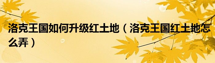 关于洛克王国如何升级红土地,洛克王国红土地怎么弄这个很多人还不知道,今天菲菲来为大家解答以上的问题,现在让我们一起来看看吧!