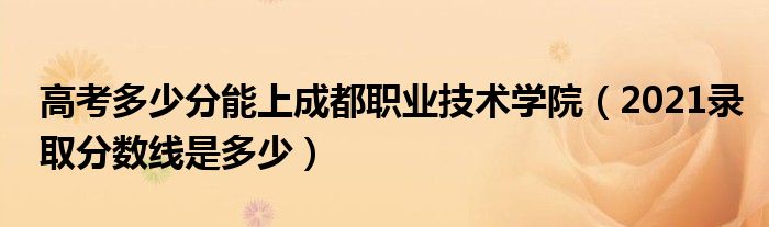 大家好,乐儿来为大家解答以下问题,高考多少分能上成都职业技术学院,2021录取分数线是多少很多人还不知道,现在让我们一起来看看吧!