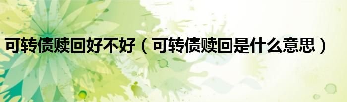 关于可转债赎回好不好,可转债赎回是什么意思这个很多人还不知道,今天菲菲来为大家解答以上的问题,现在让我们一起来看看吧!