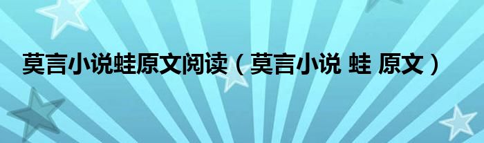 关于莫言小说蛙原文阅读,莫言小说 蛙 原文这个很多人还不知道,今天菲菲来为大家解答以上的问题,现在让我们一起来看看吧!