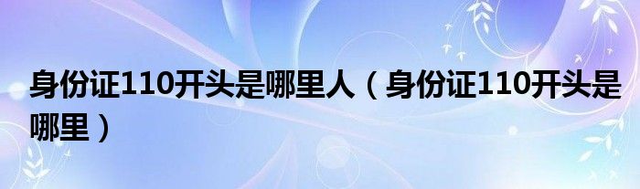 关于身份证110开头是哪里人,身份证110开头是哪里这个很多人还不知道,今天菲菲来为大家解答以上的问题,现在让我们一起来看看吧!1、是滴。本文到此分享完毕,希望对大家有所帮助。