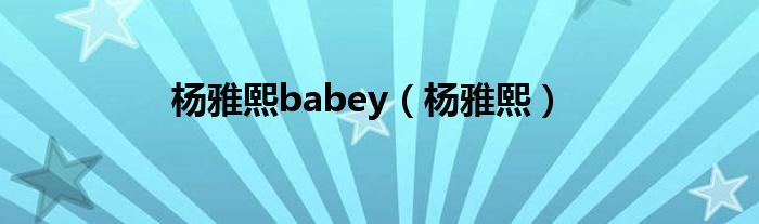 杨雅熙babey(杨雅熙)