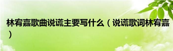 大家好,小联来为大家解答以上的问题。林宥嘉歌曲说谎主要写什么,说谎歌词林宥嘉这个很多人还不知道,现在让我们一起来看看吧!