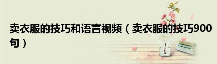 大家好,我是小科,我来为大家解答以上问题。卖衣服的技巧和语言视频,卖衣服的技巧900句很多人还不知道,现在让我们一起来看看吧!