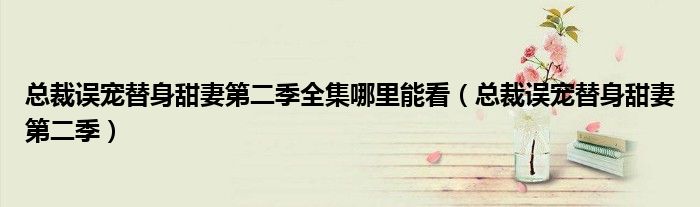 大家好,我是小科,我来为大家解答以上问题。总裁误宠替身甜妻第二季全集哪里能看,总裁误宠替身甜妻第二季很多人还不知道,现在让我们一起来看看吧!