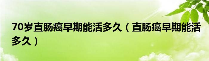 大家好,乐天来为大家解答以下的问题,70岁直肠癌早期能活多久,直肠癌早期能活多久很多人还不知道,现在让我们一起来看看吧!